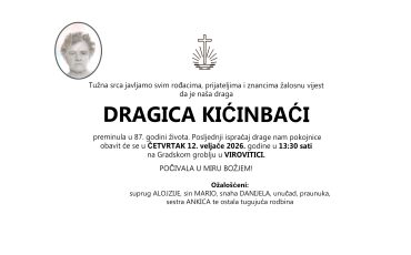 Dragica Kićinbaći, četvrtak 12.02.2026. god. u 13:30 h, VIROVITICA