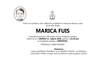 Marica Fuis, srijeda, 11.02.2026. god. Virovitica u 14:30 h