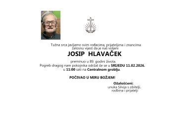 Josip Hlavaček, srijeda, 11.02.2026.god. Centralno groblje u 11:00 h