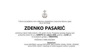 Zdenko Pasarić, subota 14.02.2026. u 12:00h, Virovitica
