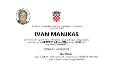 Ivan Manjkas, subota 07.02.2026. u 13:00h, Sedlarica