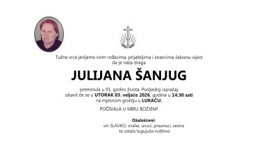 Julijana Šanjug, utorak 03.02.2026. u 14:30h, Lukač
