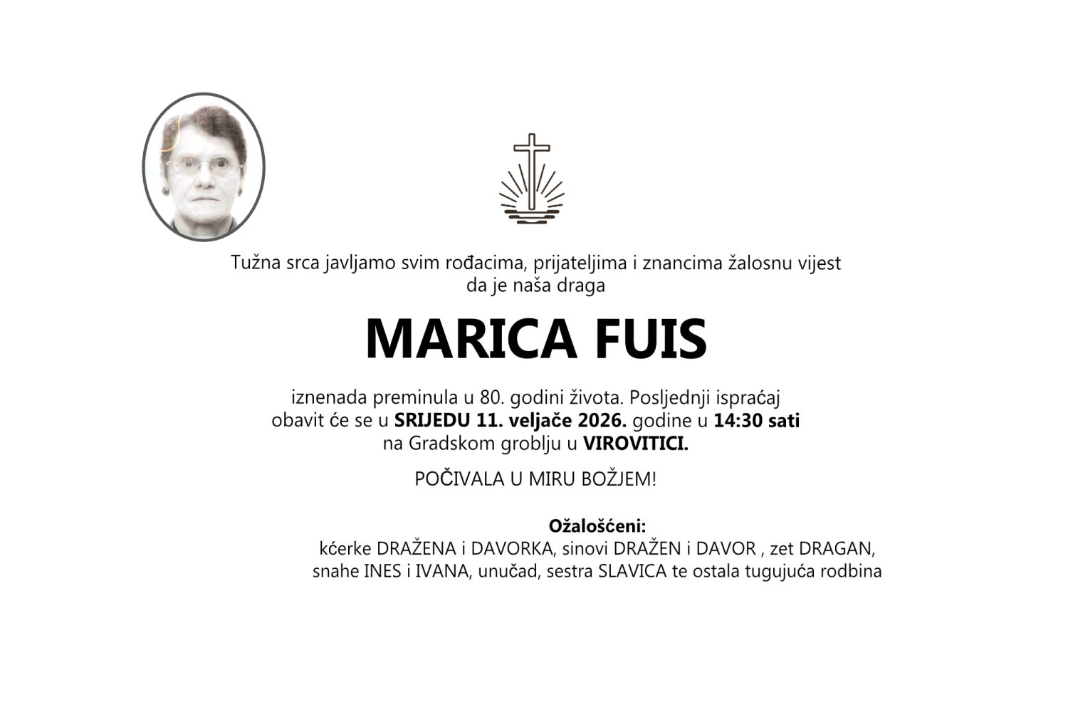 Marica Fuis, srijeda, 11.02.2026. god. Virovitica u 14:30 h